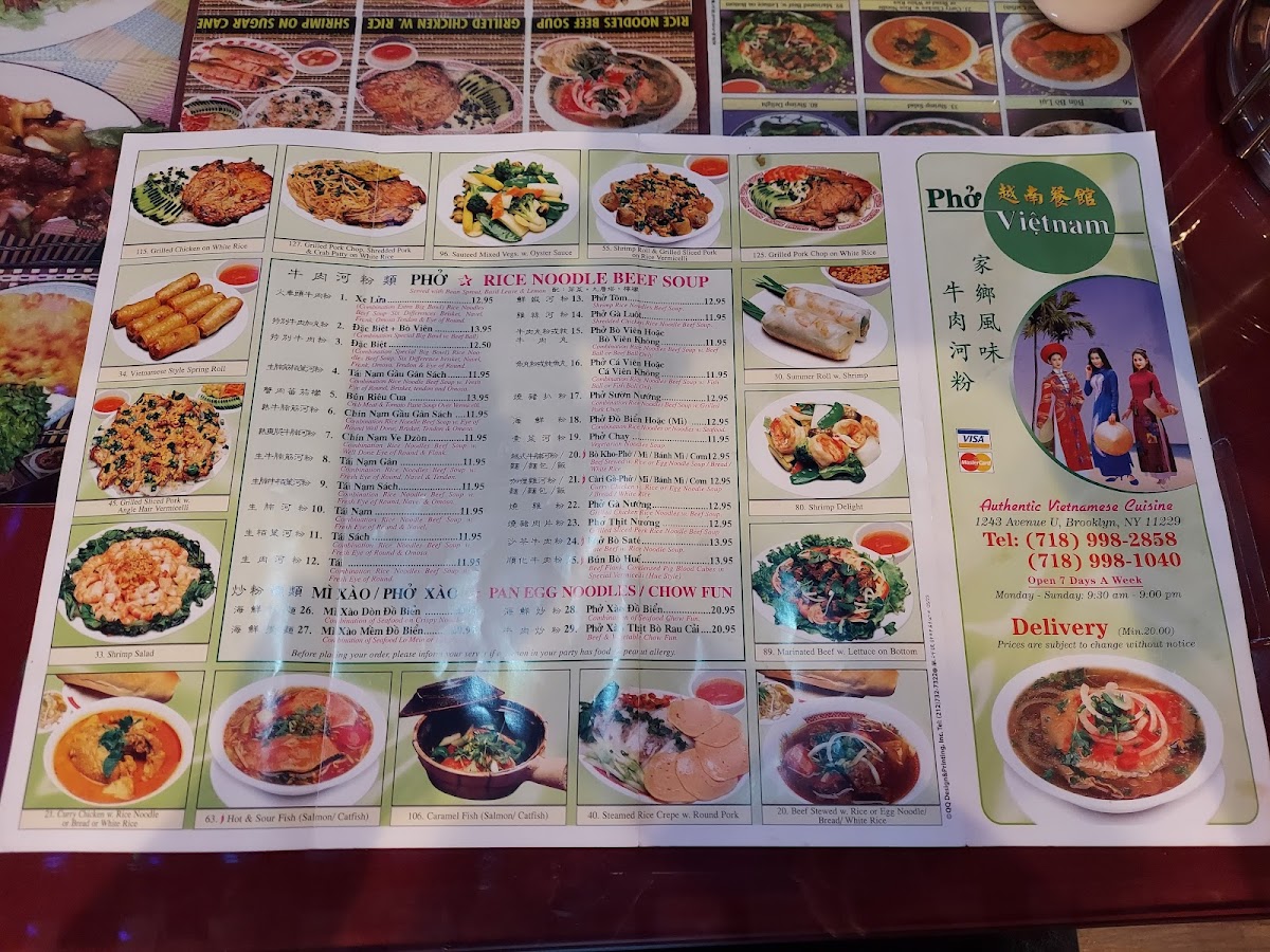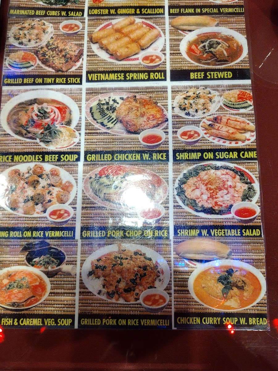 Grilled pork, fried spring rolls, rice noodles, beef soup. Served with bean sprout, basil leaves, and lemon.