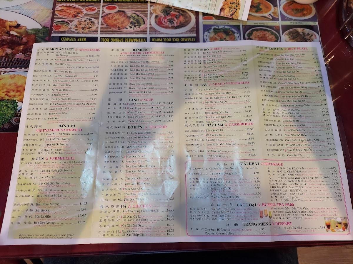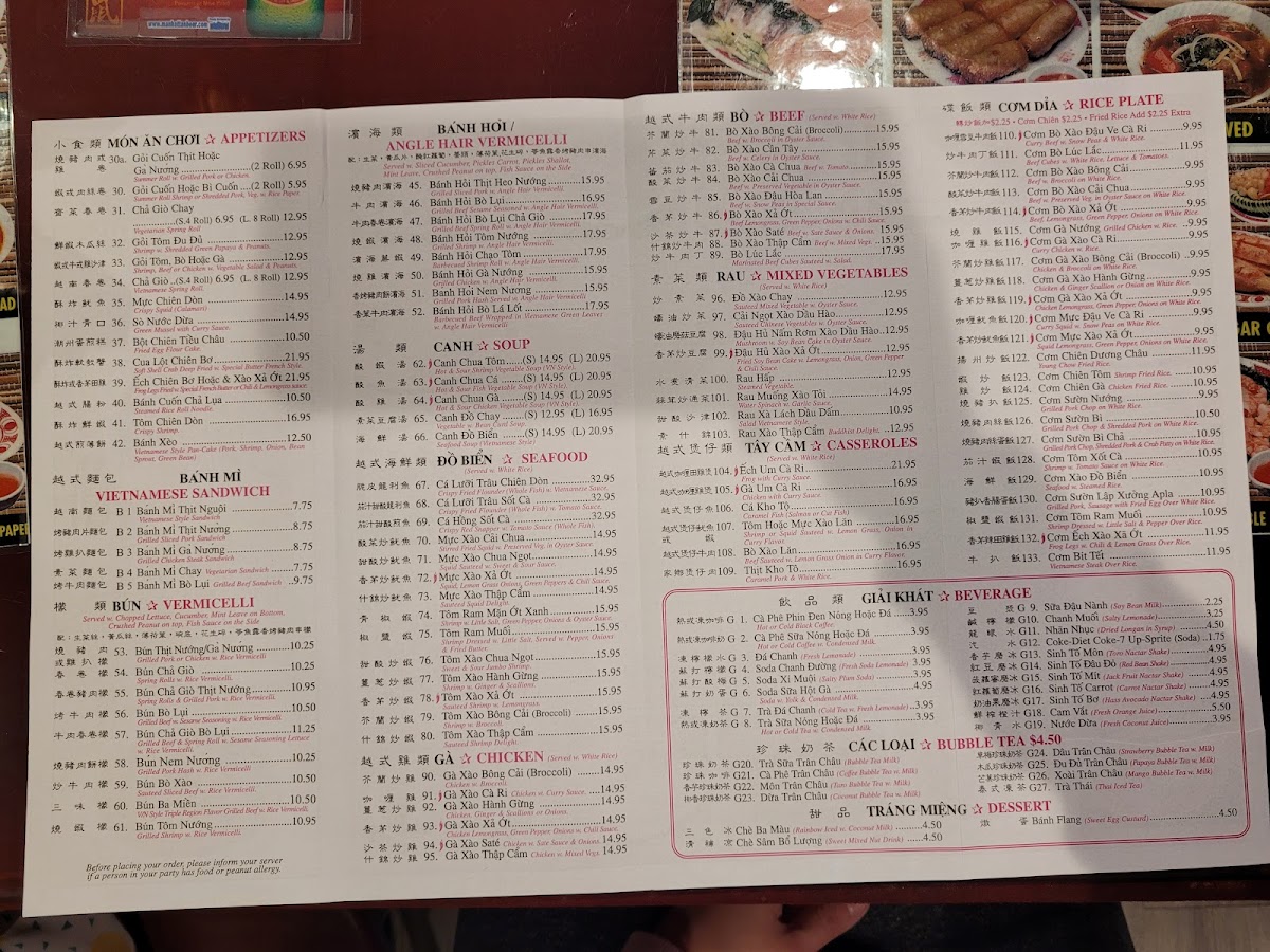 Mixed seafood, rice noodles, and your choice of broth. Served with bean sprout, basil leaves, and lemon.